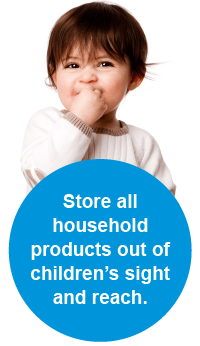 - Store all household products and cleaning solutions out of children’s sight and reach. Young kids are often eye-level with items under the kitchen and bathroom sinks.